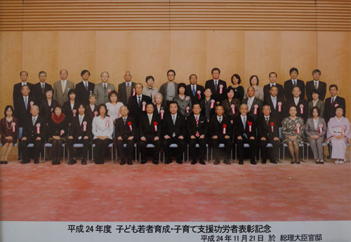 ・平成24年度 子ども若者育成・子育て支援功労者表彰記念 総理大臣官邸にて