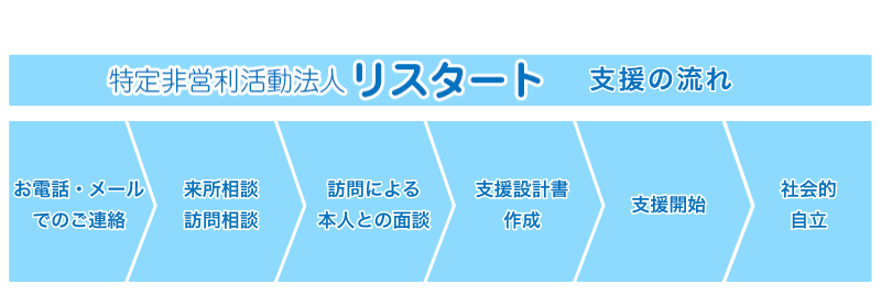 今までのリスタートのほとんどの利用者さんが、最初のころには、「少し休んだら元気になってなんとかなるだろう」と思っていたそうです。 そのまま動き出せないまま数年間が経ってしまっていました。ある利用者さんの言葉で、来月から仕事探しをしようと思いながら半年が経ち、 年末が近づいてくると来年からやろうと思うようになり、2月になると4月が区切りだからと4月を待ち... と数年が経った、とのことでした。