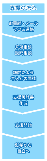 そんな場合でも、本人ができるだけ快く受け入れてもらえるように対応し、多くの生徒に自分でその固く閉ざしたドアを開けてもらってきました。 時間がかかることもありますが、ご自身の勇気を固め、自立への決心をしてもらう時間だと考えています。その間はできるだけ気持ちを込めてお話することで、 できるだけ本人にそのドアを開けて、自らの足で自立への一歩目を踏み出してもらっています。一見うまくいかないように思いがちなのですが、その時間が非常に大切です。 私どもからの問いをきっかけに、本人が自らの事を考え、自分を変えようと決意する時間だと考えています。